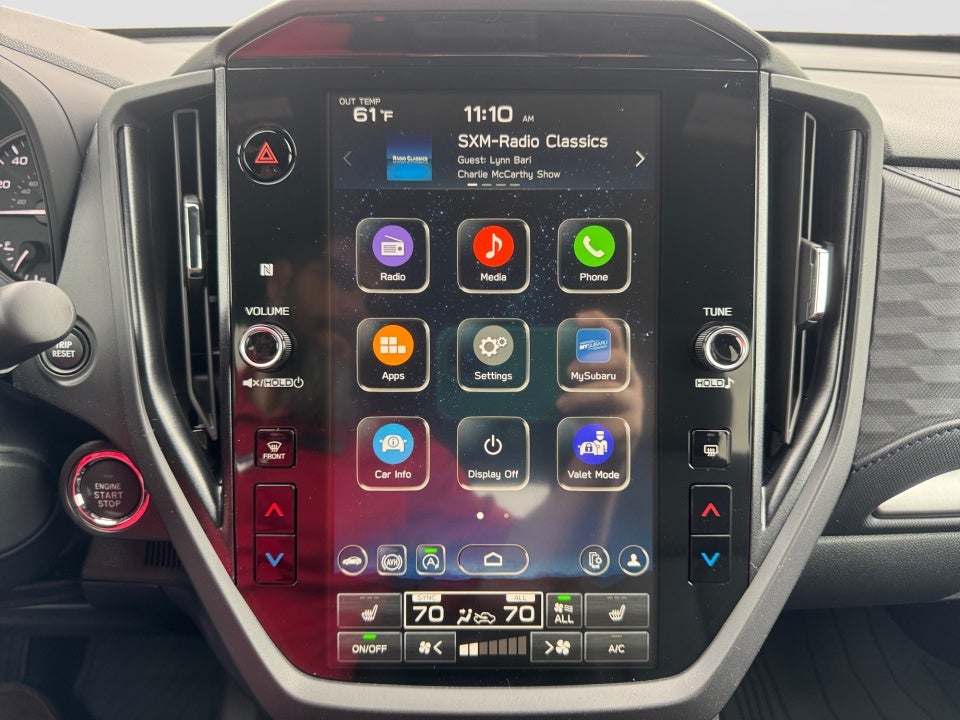 • Radio: Subaru 11.6" Multimedia Plus System -inc: valet mode, integrated center information display, AM/FM stereo HD Radio, multi-touch gesture high resolution display screen, voice activated controls, Bluetooth® audio streaming and hands-free phone connectivity w/SMS text messaging (refer to Subaru.com for cellphone compatibility), iPod control capability, smartphone integration: Android Auto and Apple CarPlay w/full screen view and wireless connection, SiriusXM satellite radio w/360L (free 4-month trial subscription included), USB and Over The Air (OTA) audio system update, steering wheel controls, 6 speakers, 3.5mm auxiliary input jack and roof mounted audio and satellite antenna