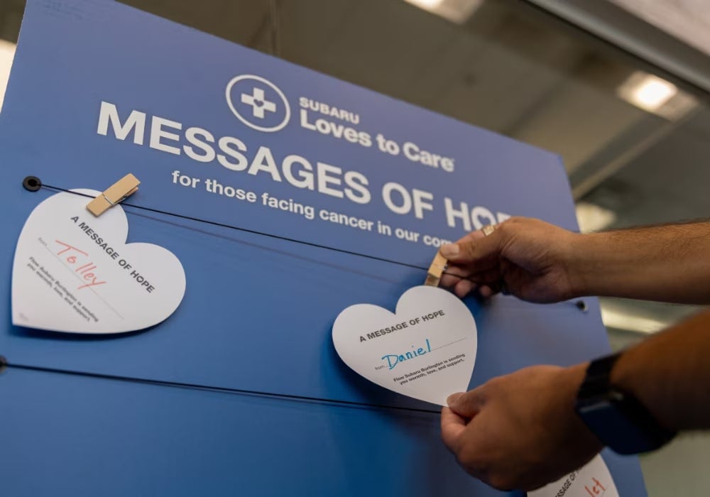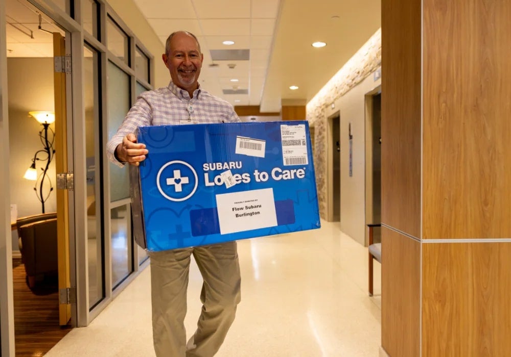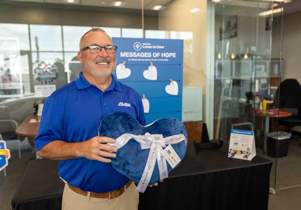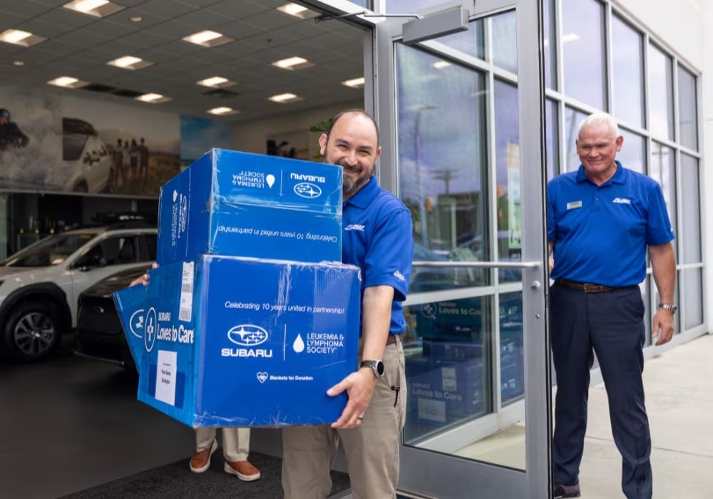 Flow Subaru Burlington was honored to partner with The Leukemia & Lymphoma Society (LLS) in a heartfelt effort to bring comfort and support to patients at the Cone Health Cancer Center at Alamance Regional in Burlington, NC. As part of Subaru's ongoing Love Promise initiative, our team visited the cancer center on June 17, 2025, to personally deliver warm blankets and care packages to individuals undergoing treatment.