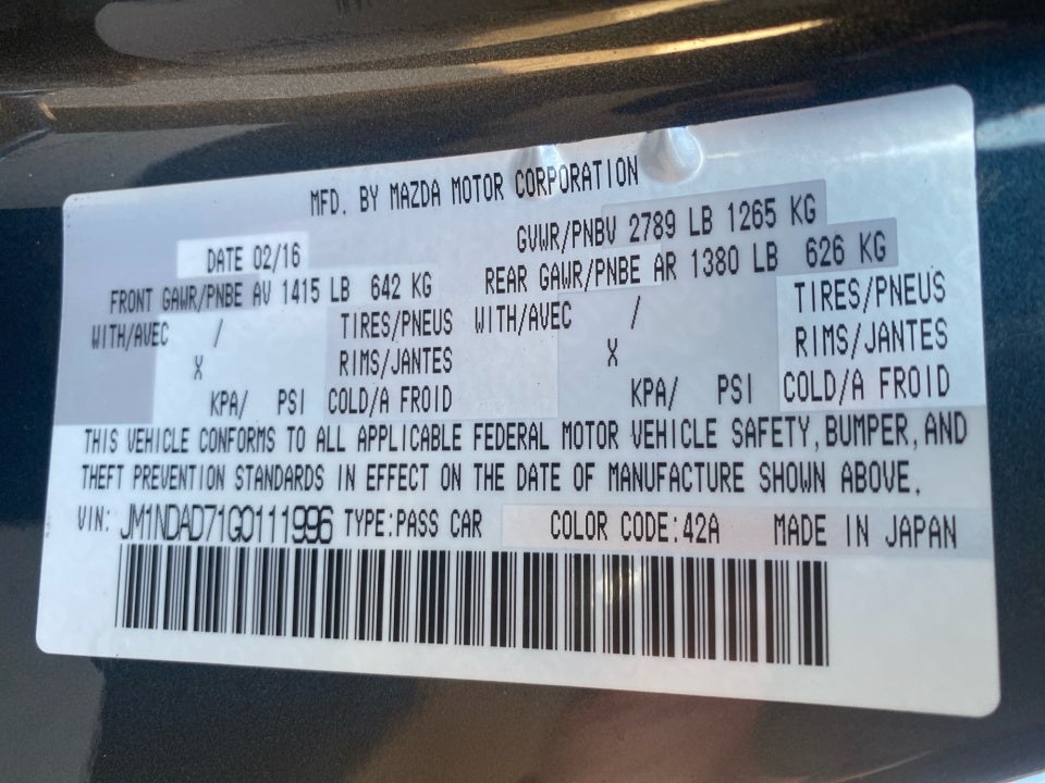 - Vehicle Name: Mazda MX-5 Miata