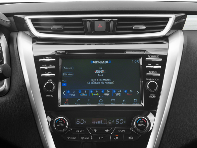 • Radio: AM/FM/CD Audio System w/Navigation -inc: MP3/WMA reader, 6 speakers, auxiliary audio input jack, SiriusXM satellite radio, NissanConnect w/Mobile Apps, 8" color display w/multi-touch control, Nissan voice recognition for navigation and audio, SiriusXM Traffic, SiriusXM Traffic Link (fuel prices, weather, movie listings, stock info and sports scores), HD Radio, front USB connection port for iPod interface and other compatible devices, Bluetooth® hands-free phone system, streaming audio via Bluetooth® and hands-free text messaging assistant