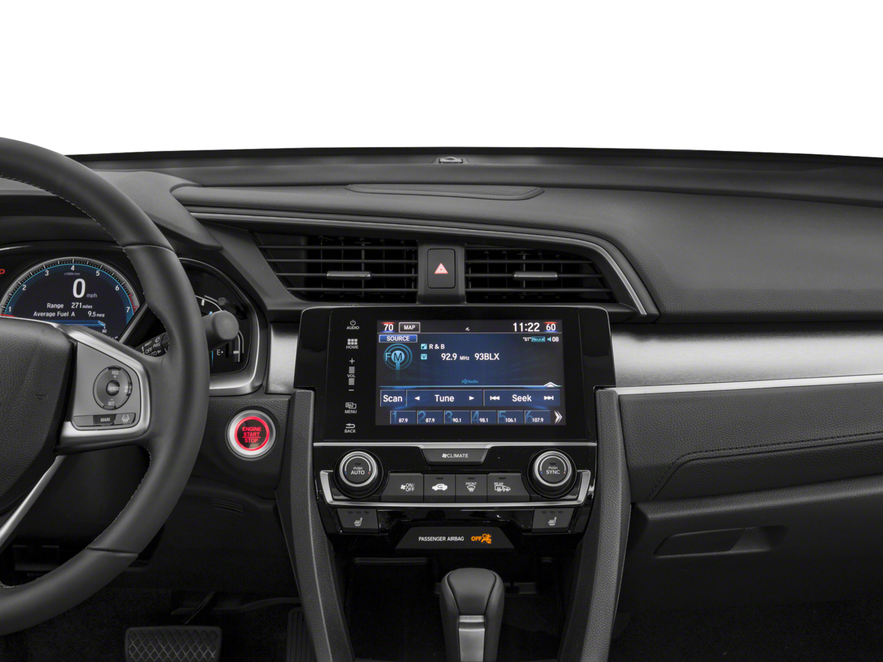 • Radio: 450-Watt AM/FM/HD/SiriusXM Audio System -inc: 9 speakers, subwoofer, 7-inch display w/high-resolution WVGA (800x480) electrostatic touch-screen and customizable feature settings, Honda Satellite-Linked Navigation System w/voice recognition, Honda HD digital traffic, turn-by-turn directions, compass and Song By Voice (SBV), Bluetooth® HandsFreeLink, Bluetooth® streaming audio, radio data system (RDS), speed-sensitive volume control (SVC), 1.5-amp USB smartphone/audio interface in front, 1.0-amp USB audio interface port in center console, HondaLink, Apple CarPlay integration, Android Auto integration, Pandora compatibility, SMS text message function, illuminated steering wheel-mounted audio controls and navigation controls and body-colored fin-type roof-mounted antenna