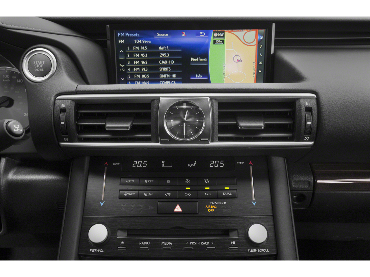 • Radio: Lexus Display Audio w/Navigation System -inc: AM/FM/in-dash CD, HD Radio (complimentary traffic and weather), 7" VGA screen, 8 speakers, 293-watts, digital signal processing w/Automatic Sound Levelizer (ASL), integrated SiriusXM satellite radio receiver (complimentary 90-day trial subscription included), Scout GPS link, iTunes tagging, MP3/WMA and dual USB plugs, rear glass-imprinted radio antenna w/separate FM diversity antenna and streaming audio via Bluetooth® 3.0