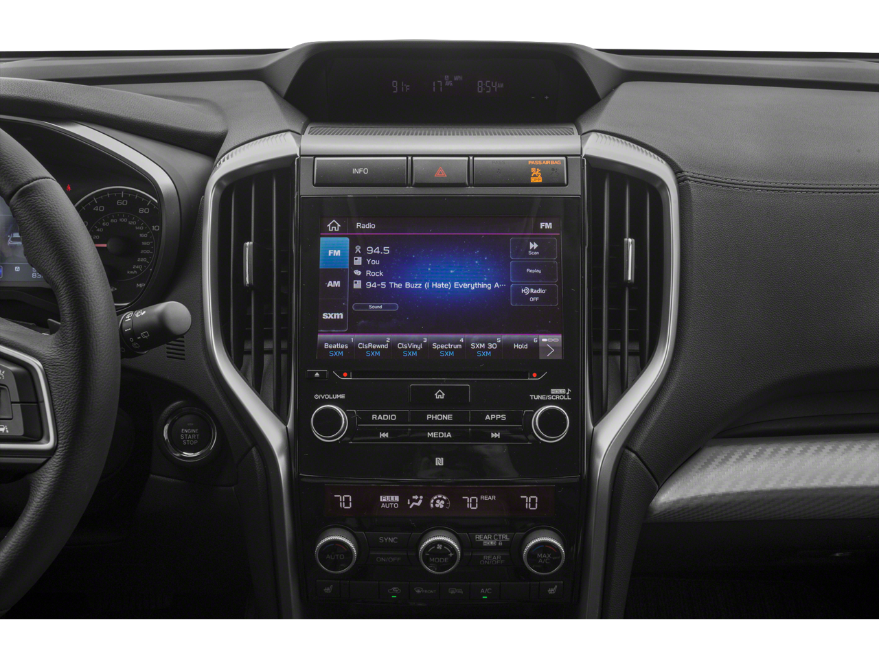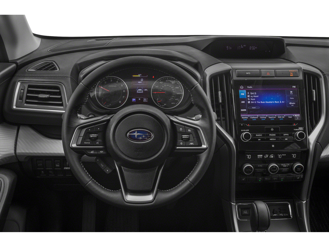 • Radio: Subaru STARLINK 8.0" Multimedia Plus System -inc: AM/FM stereo HD Radio w/single disc CD player, MP3/WMA/CRR/RW file capability, multi touch gesture high resolution LCD display screen, voice activated controls, Bluetooth® audio streaming connectivity, Bluetooth® hands-free phone connectivity, Bluetooth® hands-free SMS text messaging connectivity (applicable w/compatible cell phone), Near Field Communication (NFC), iPod control capability, SiriusXM All Access radio (subscription required), SiriusXM Travel Link (subscription required), smartphone integration for Aha, Android Auto, CarPlay and Pandora, STARLINK cloud applications, steering wheel controls for audio and Bluetooth®, 6 speakers, 3.5mm auxiliary input jack and front and rear dual USB ports