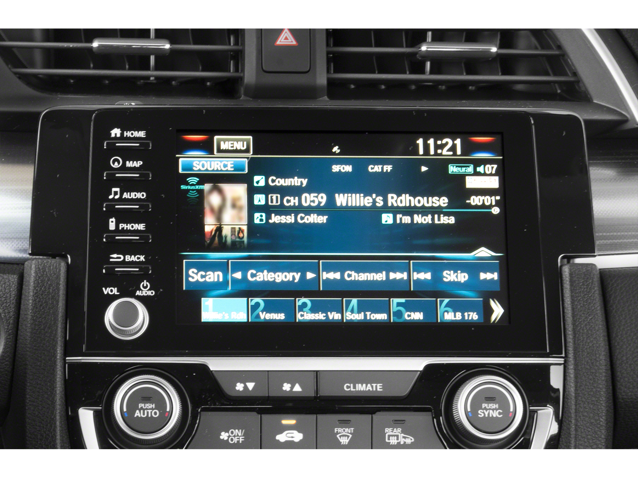 - Radio: 450-Watt AM/FM/HD/SiriusXM Audio System -inc: 10 premium speakers, including subwoofer, 7-inch display w/high-resolution electrostatic touch-screen, knob and hard keys for primary controls and customizable feature settings, Bluetooth® HandsFreeLink, Bluetooth® streaming audio, radio data system (RDS), speed-sensitive volume compensation (SVC), 1.5-amp USB smartphone/audio interface in front, 1.0-amp USB audio interface port in center console, HondaLink, Apple CarPlay integration, Android Auto integration, SMS text message function, Honda Satellite Navigation System w/voice recognition, Honda HD digital traffic and fin-type roof-mounted antenna and illuminated steering wheel-mounted controls