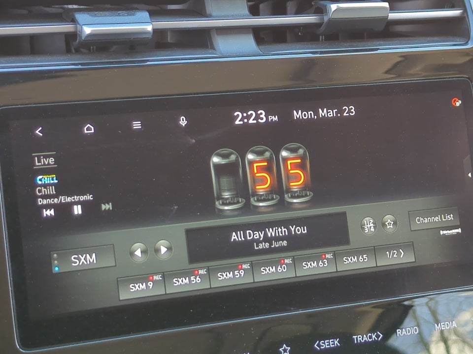 - Radio: Bose Premium w/AM/FM/HD/SiriusXM Audio System -inc: 10.25" color touchscreen w/onboard navigation and traffic flow including incident data via HD radio (HERE) (AVN 5.0), 8 speakers (1 twiddler on center of instrument panel, 2 tweeters, 2 front door, 2 rear door, 1 woofer on rear quarter panel), digital 8 channel amp w/custom equalization, digital signal processing and dynamic speed compensation, Blue Link connected car, Android Auto and Apple CarPlay, USB outlets and Bluetooth® w/voice recognition