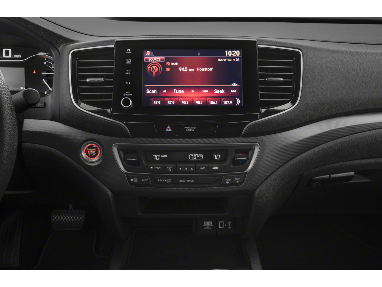 • Radio: 215-Watt Audio System w/7 Speakers -inc: subwoofer, Bluetooth® streaming audio, MP3/auxiliary input jack, Radio Data System (RDS), Speed-Sensitive Volume Compensation (SVC), 8" display audio w/high-resolution electrostatic touch screen and customizable feature settings, Apple CarPlay compatibility, Android Auto compatibility, HondaLink, SMS text message function (Compatible w/select phones w/Bluetooth®, Your wireless carrier's rate plans apply, State or local laws may limit use of texting feature, Only use texting feature when conditions allow you to do so safely.) and 1.5-amp USB smartphone/audio interface in front console (1 port)