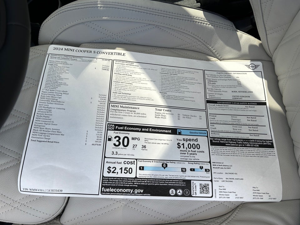 Discover the perfect blend of style performance and technology in this stunning 2024 MINI Cooper S Iconic. With its sleek White exterior this one-owner MINI is a true head-turner ready to elevate your driving experience.