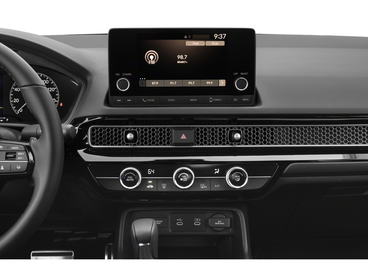 • Radio: 180-Watt Audio System -inc: 8 speakers, 7" color touchscreen, Bluetooth® HandsFreeLink and streaming audio, HondaLink, Speed-Sensitive Volume Compensation (SVC), Radio Data System (RDS), Apple CarPlay and Android Auto compatibility and USB-C 3.0A smartphone/audio interface port in front console