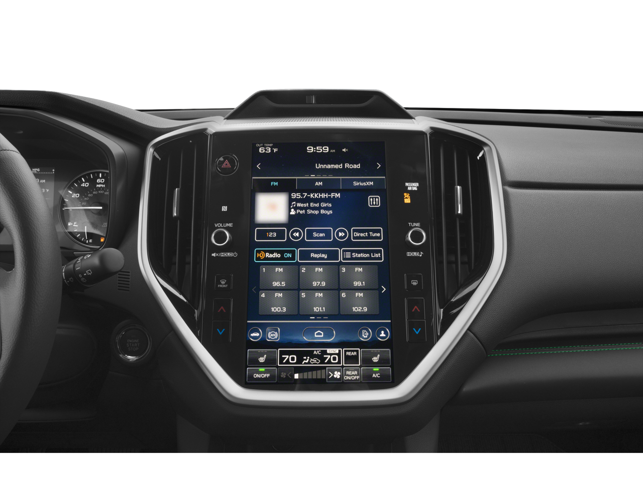 • Radio: Subaru 11.6" Multimedia System w/Navigation -inc: AM/FM stereo HD Radio, multi-touch gesture high resolution display screen, voice activated controls for radio and navigation, Bluetooth® audio streaming and hands-free phone connectivity w/SMS text messaging connectivity (refer to subaru.com for cell phone compatibility), Near Field Communication (NFC), TomTom navigation software w/what3words, iPod control capability, smartphone integration for Android Auto and Apple CarPlay w/full screen view and wireless connection, USB audio system update, TomTom navigation system update w/USB/Map Over The Air (MOTA) (3 years free map updates), steering wheel control switches for audio and Bluetooth®, harman/kardon quantum logic surround sound speaker system w/14 speakers, subwoofer and harman/kardon 792 watt equivalent maximum output amplifier, 3.5mm illuminated auxiliary input jack, illuminated USB A and C input/charge ports, SiriusXM w/360L (4 months free trial included/subscription required after), SiriusXM Travel Link (4 months free trial included/subscription required after) and SiriusXM Traffic (3 years free trial included/subscription required after)
