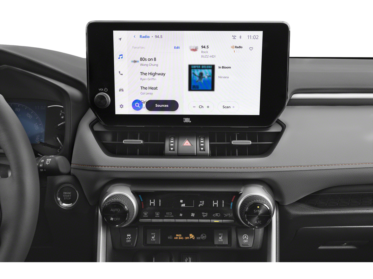 • Radio w/Seek-Scan, Clock, Speed Compensated Volume Control, Aux Audio Input Jack, Steering Wheel Controls, Voice Activation, Radio Data System and External Memory Control